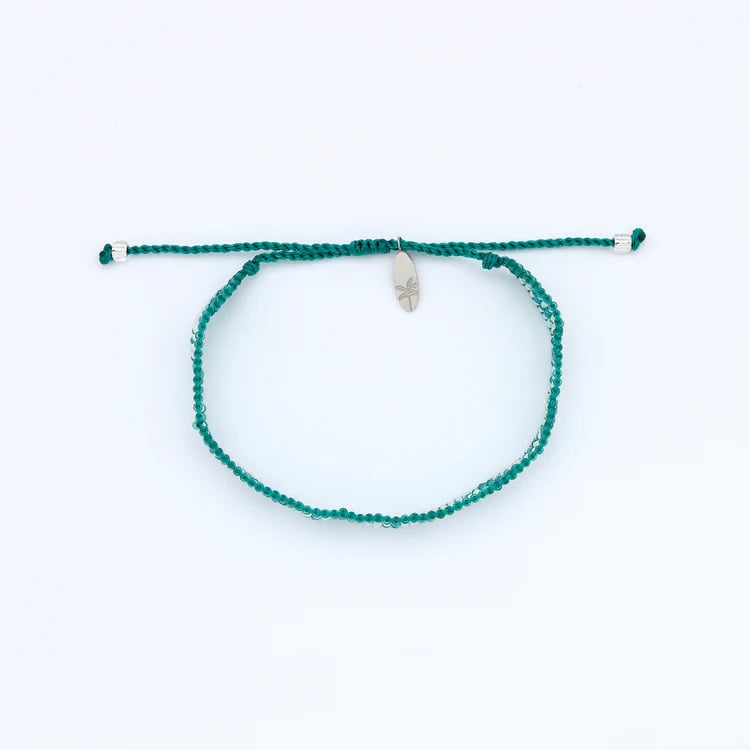 - Made with colourful glass seed beads, hand threaded and woven onto a soft nylon cord, finished with our palm tree surfboard charm.