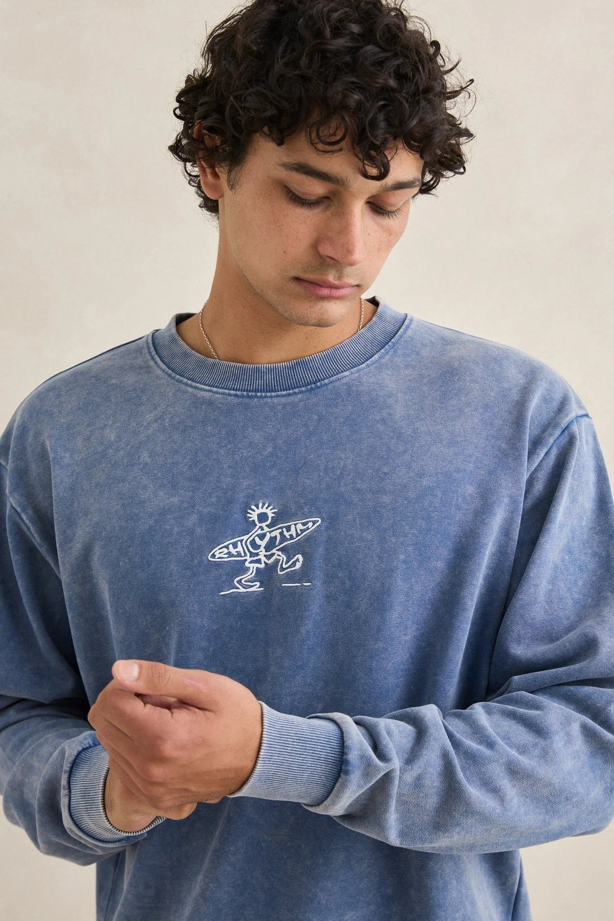 Rhythm Men's Drifter Salt Wash Crew Fleece - Indigo