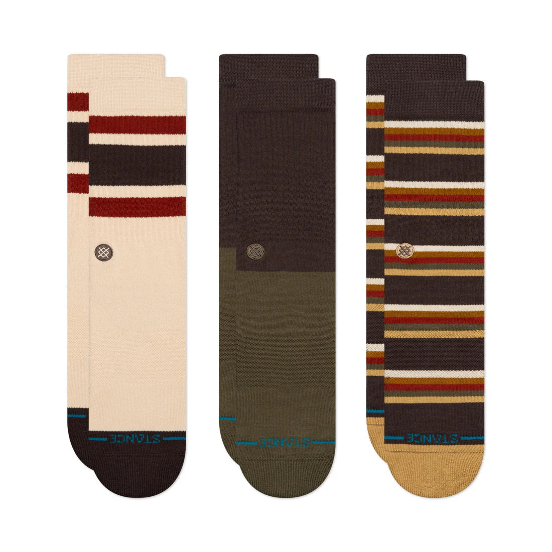 Stance Mill House 3 Pack Crew Socks - Dark Brown
